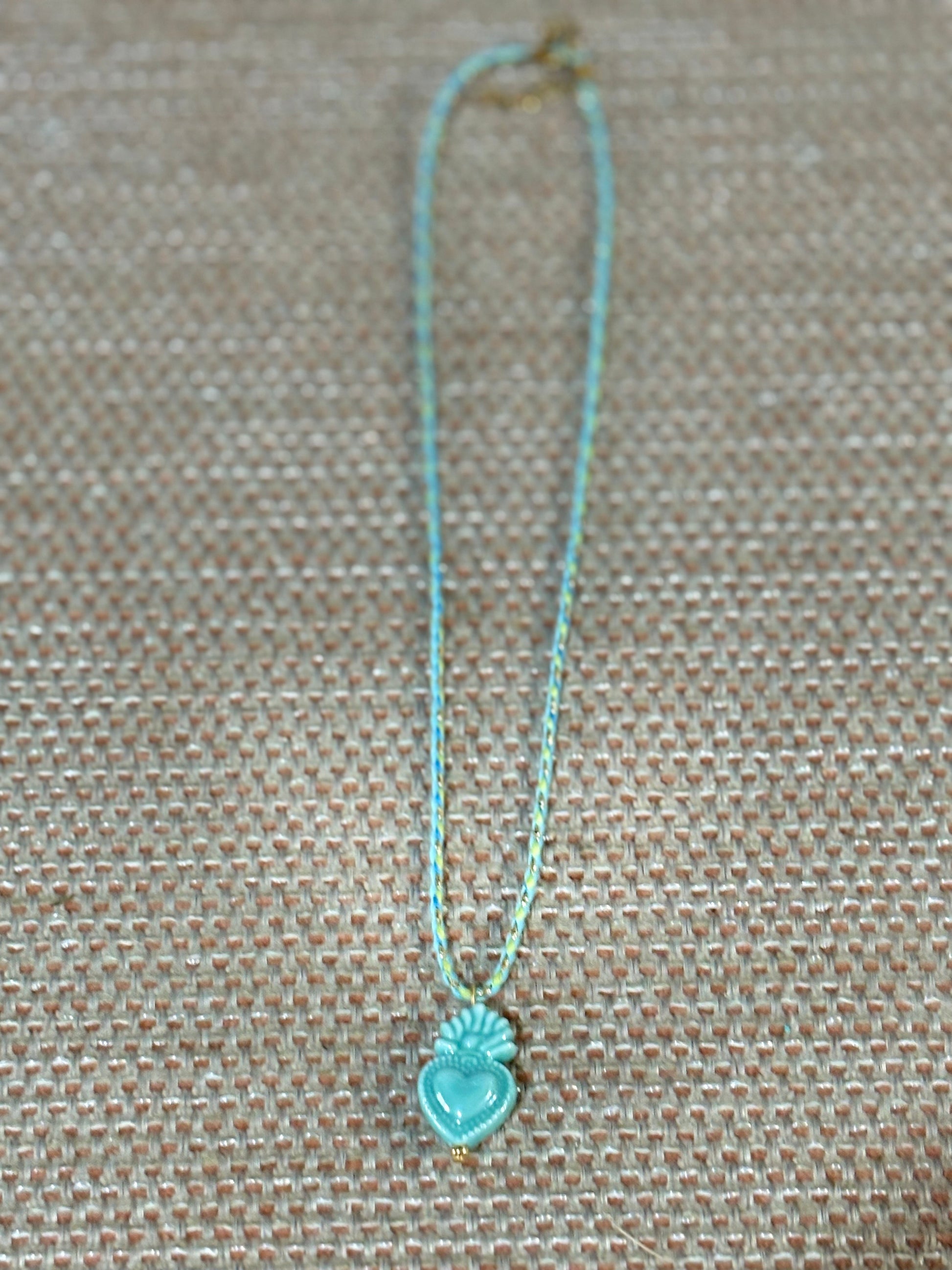 Collar con cordón trenzado y colgante de corazón esmaltado