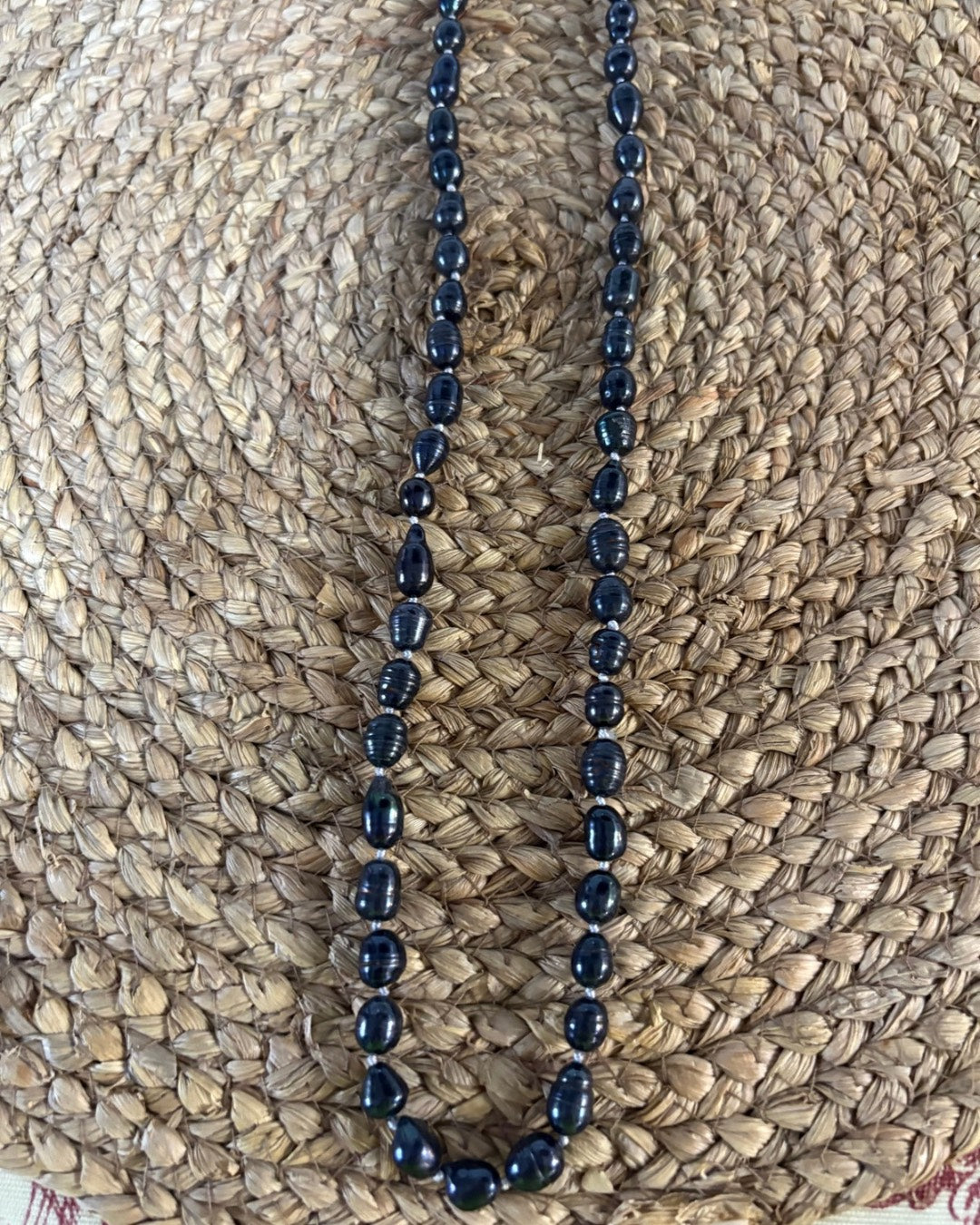 Este collar captura la belleza orgánica con sus perlas de río irregulares (estilo barroco). A diferencia de las perlas perfectamente redondas, la forma única y las variaciones de cada perla le confieren a esta pieza un carácter rústico y elegante a la vez.