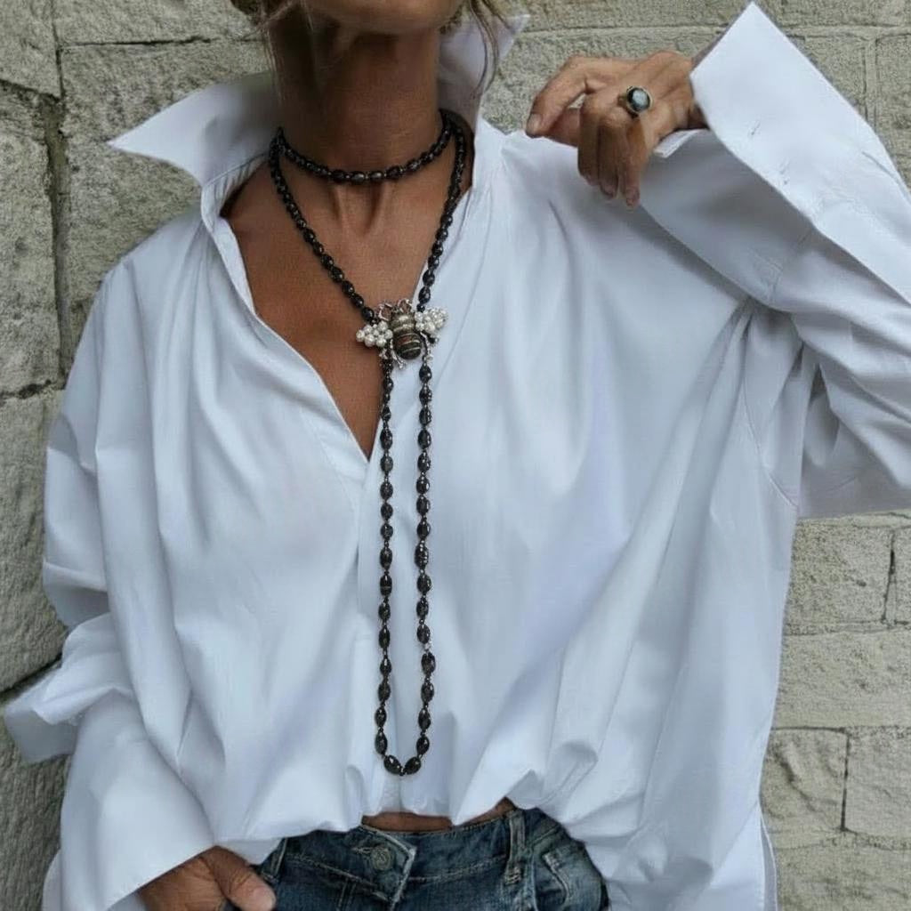 Su diseño de cadena larga lo hace extremadamente versátil: puedes llevarlo extendido a una sola vuelta para estilizar la figura, o doblarlo para crear un look de doble collar más voluminoso.