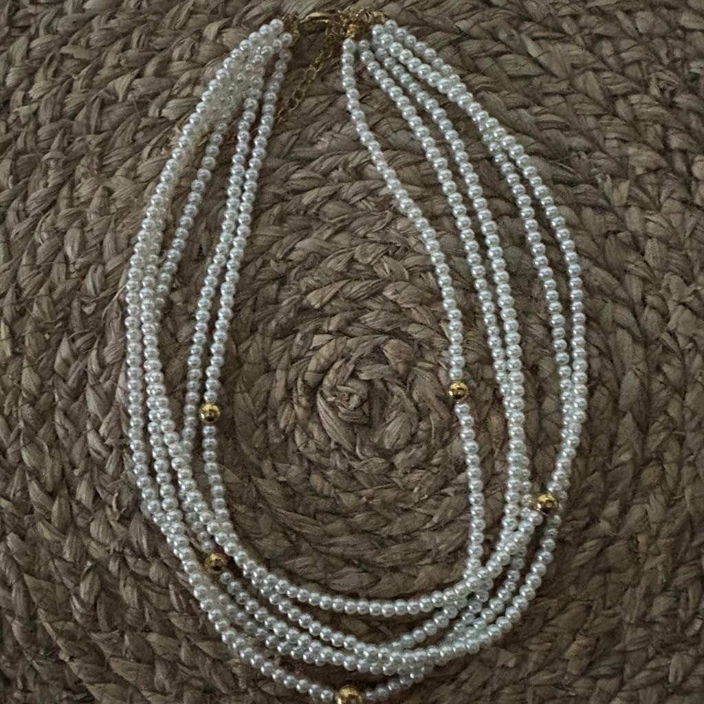 Collar Multicapa de Perlas con Detalles Dorados