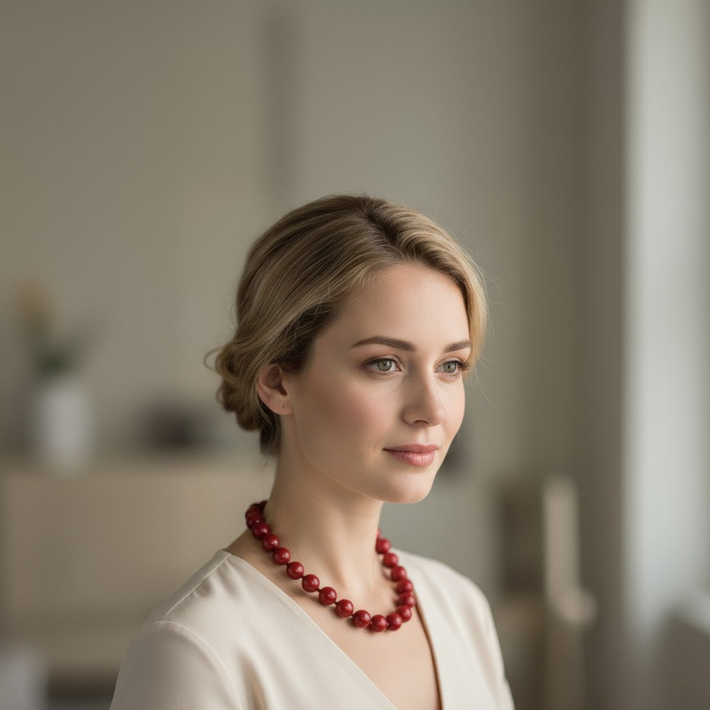 Gargantilla de bolas medianas de resina color burdeos – toque sofisticado
