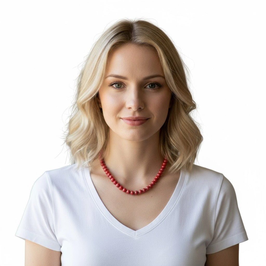 La gargantilla de resina color burdeos es una pieza con carácter, perfecta para destacar con elegancia. Su tono profundo y brillante realza la piel y aporta un aire refinado a cualquier conjunto. Las bolas medianas equilibran presencia y ligereza, convirtiéndola en un accesorio ideal para looks otoñales, cenas o eventos especiales.